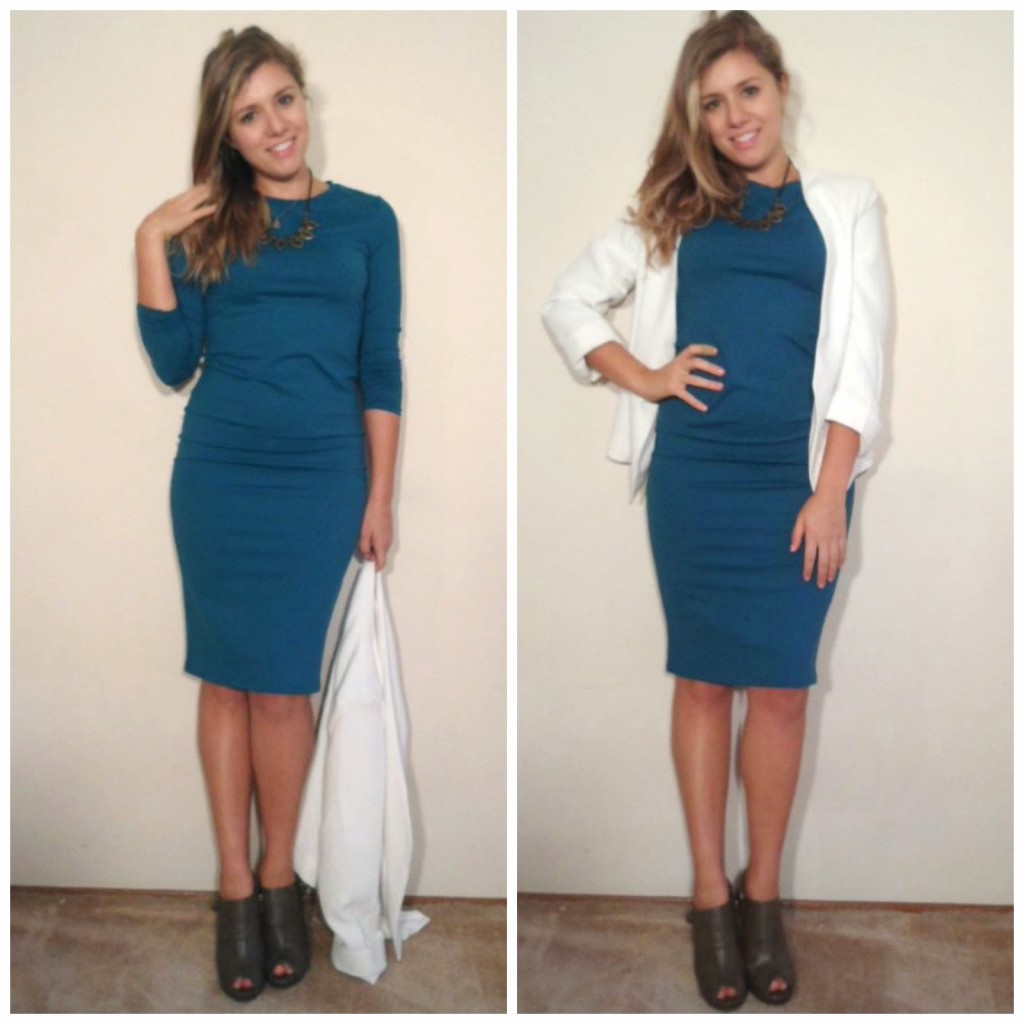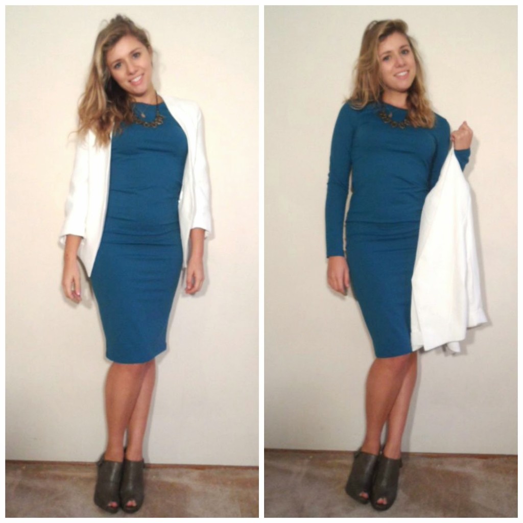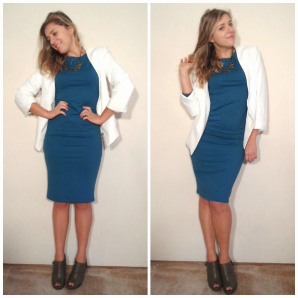 Necklace: Mimi Scholer | Blazer: Philosophy Clothing (similar here and here) | Dress: Nordstrom | Shoes: hand-me-down’s (similar here, here, and here)