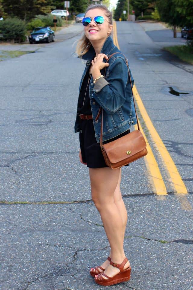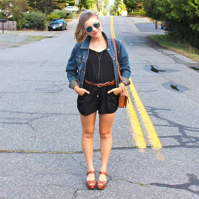 I adore your casual weekend romper look! Adding a denim jacket is the perfect touch!